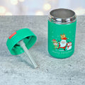 Mini Green bottle with Red sipper Lid christmas themed Stainless Steel sipper water bottle for Toddlers & Kids, 400ml