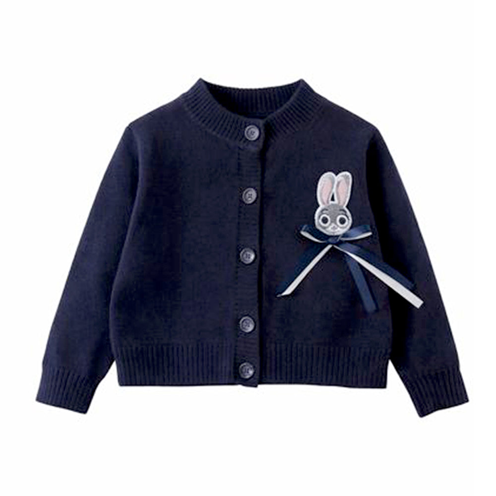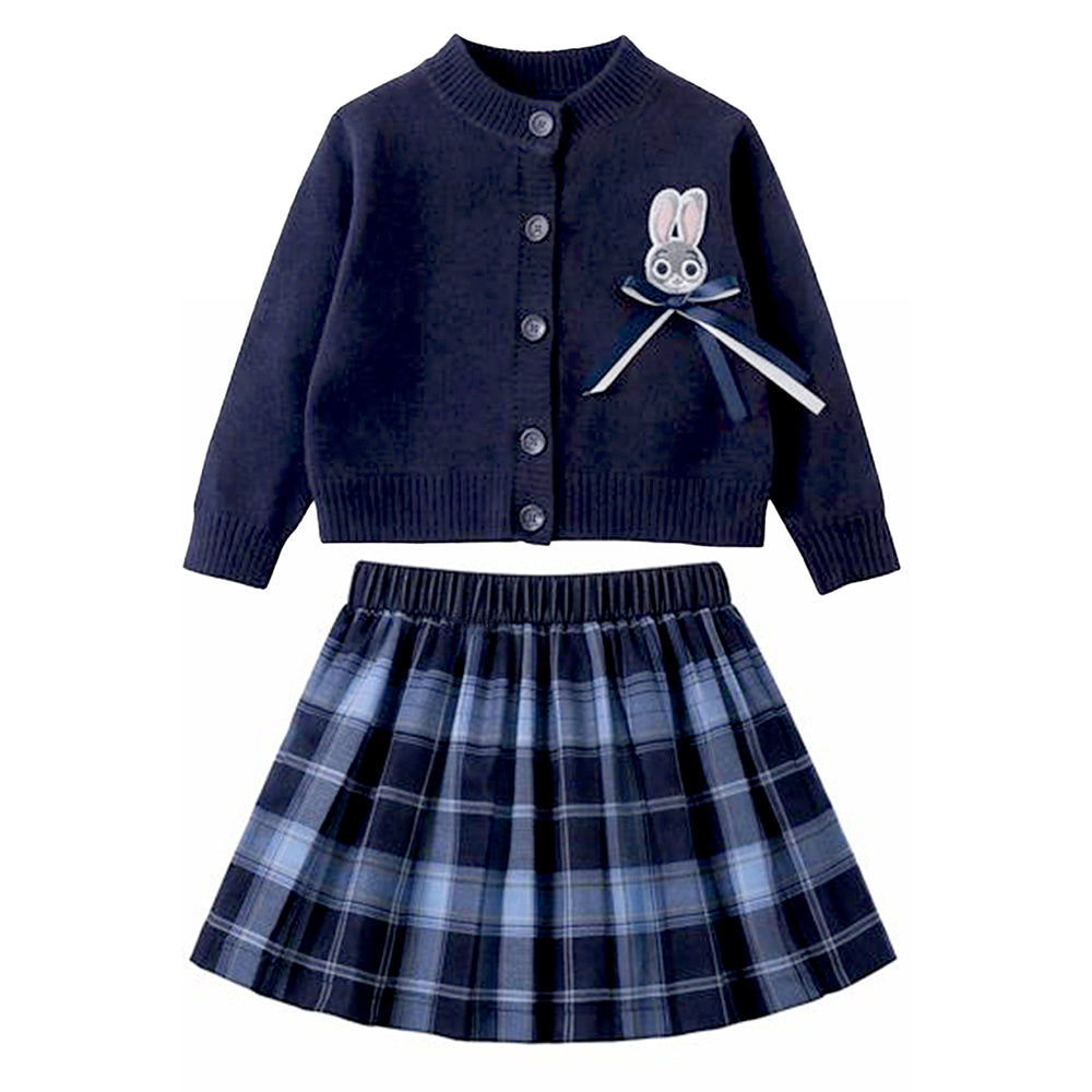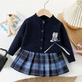 Navy Bunny Cardigan & Checked Skirt, Winterwear 2Pcs set for Girls