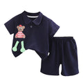 Navy Long Legs Teddy 2 Pcs Shorts Set For Toddlers And Kids