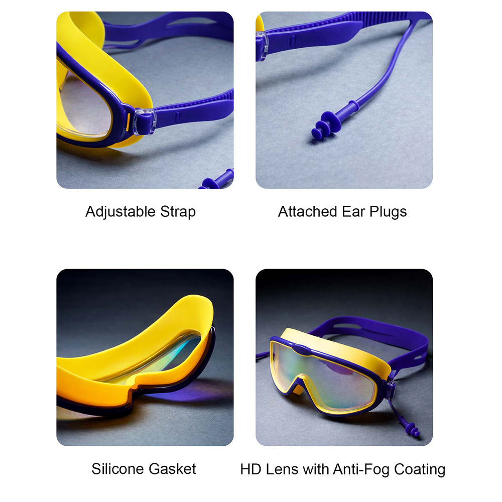 1. Protection & Anti Fog: This kids swimming goggle is crafted with high-definition PC lenses featuring an anti-fog coating for clear underwater vision. The lenses prevent water from entering, ensuring a safe and enjoyable swimming experience for kids.