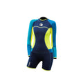 NavyTeal and Fluroscent Knee Length Scuba Swimsuit 1.5mm Neoprene Swimwear for water adventures for Teens and Adults