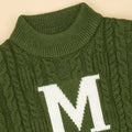 Olive Letter “M” Cable-Knit , Christmas Cardigan Winter Sweater for Kids