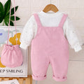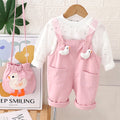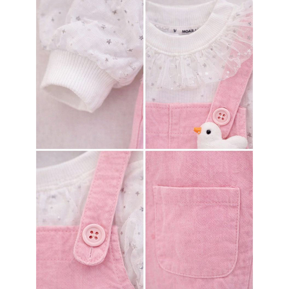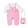 Pastel Pink Duck Dungaree with Frill T-shirt and matching sling bag, 2Pcs Clothing Set For Toddlers And Kids