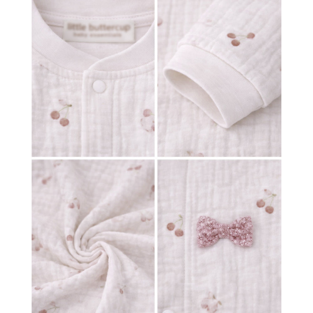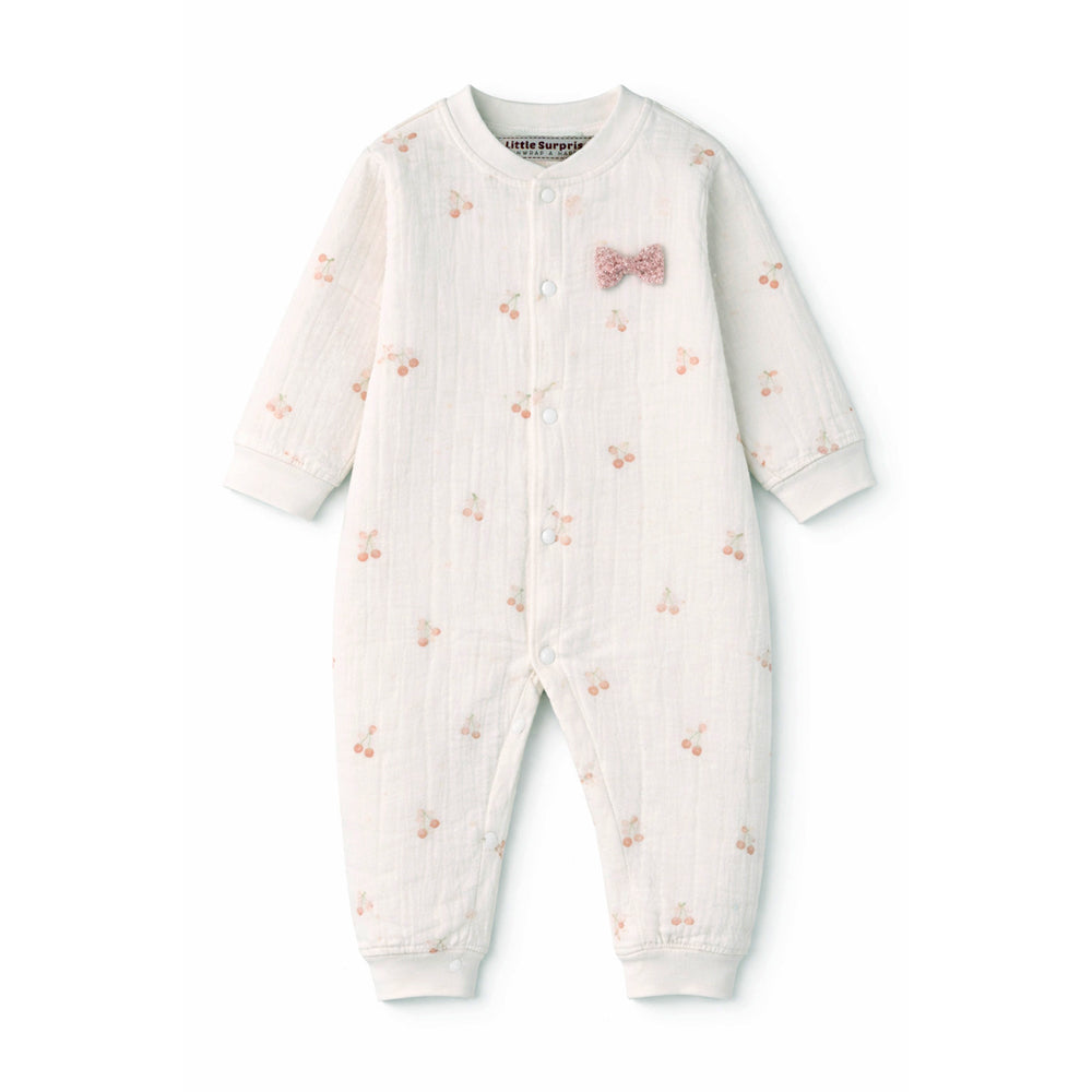 Pink Bow and Cherry, Full Sleeves Jumpsuit Hoodie Romper for Tiny Toddlers