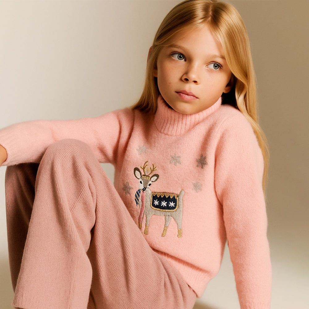 سترة دافئة مزينة برسومات الرنة باللون الوردي وسترة عيد الميلاد للأطفال الصغار والأطفال