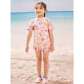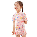 ملابس سباحة للأطفال برسومات الفواكه الوردية وقوس قزح مع قبعة سباحة متطابقة بعامل حماية من الأشعة فوق البنفسجية 50+