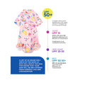 - حماية من الشمس: هذه المادة الفريدة UPF 50+ تجعل من بدلة السباحة هذه بدلة سباحة واقية من الطفح الجلدي، وتمنع أكثر من 98% من الأشعة فوق البنفسجية الضارة للشمس وتحمي أطفالك من حروق الشمس مما يحافظ على بشرة أطفالك آمنة.