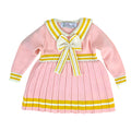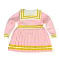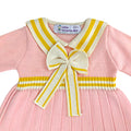 Pink & Mustard Big Bow & Stripes Sailor neck Winter wear Frock for girls