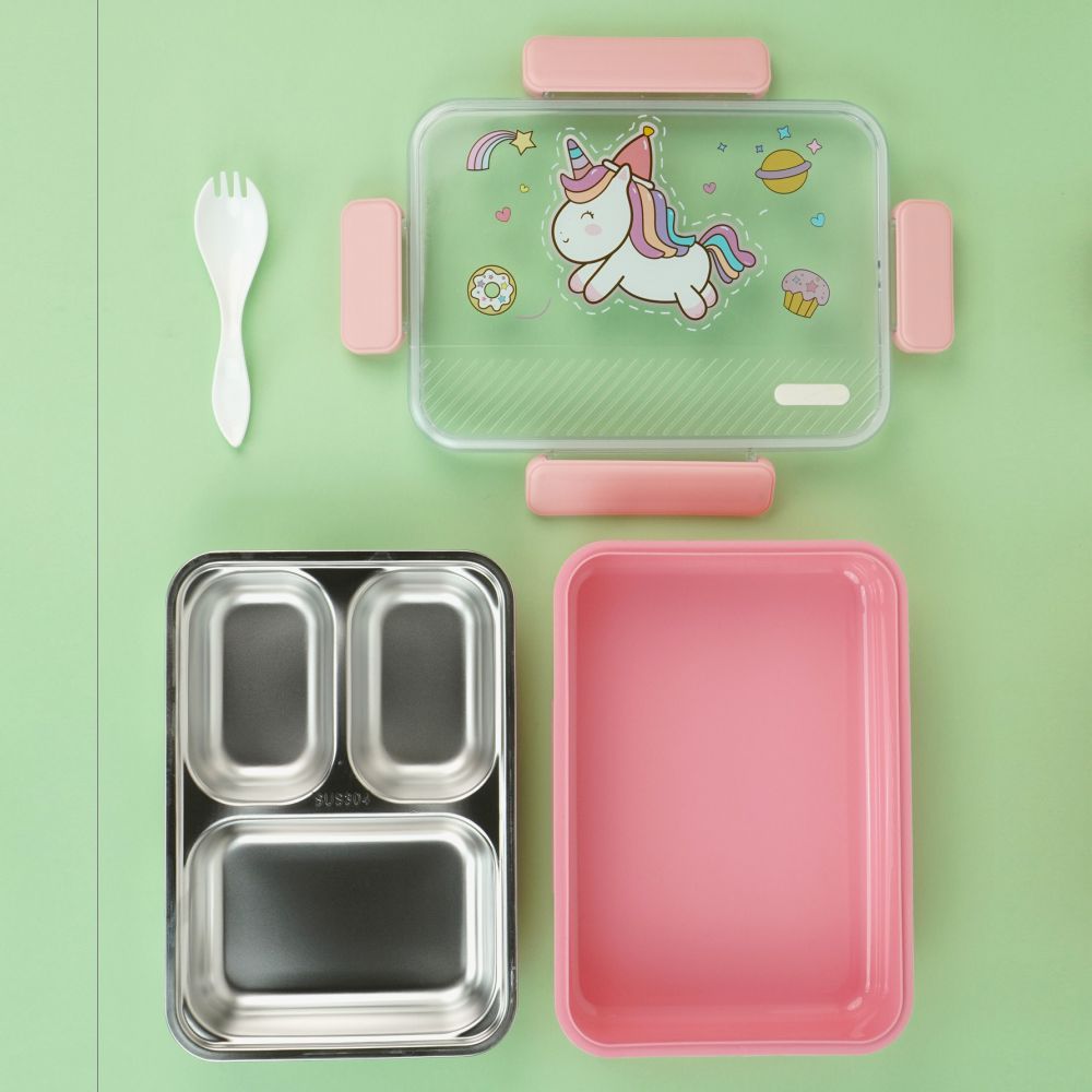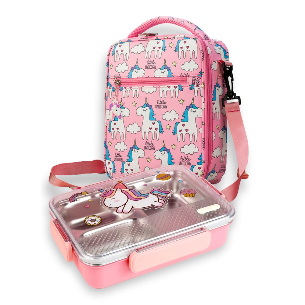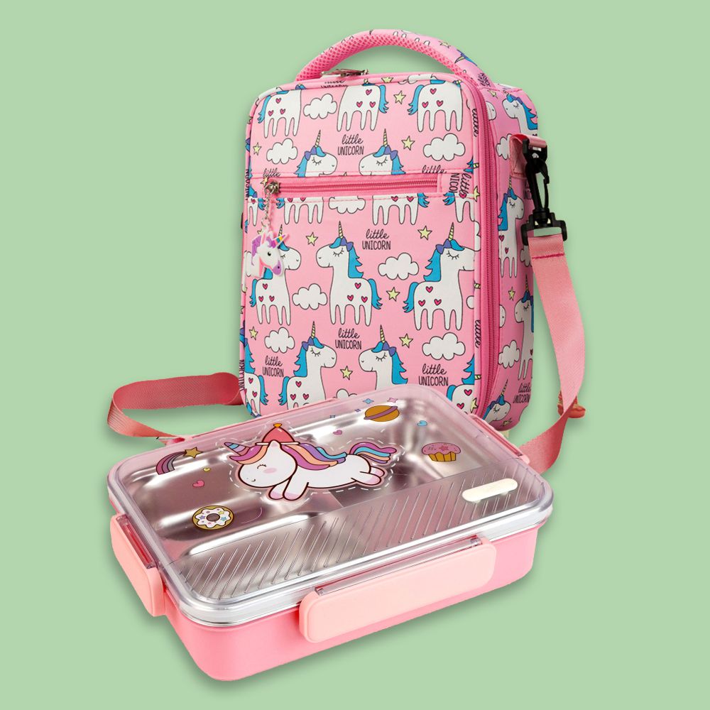 Pink Party Hat Unicorn Big Size Stainless Steel Kids Lunch Box/Tiffin with matching Lunch Bag