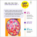 1.Design:Designed in a fun Tropical Floral print,this kids sun hat provides excellent sun protection with a wide brim to shield the face and neck.Its not a heavy hat .It is designed as a super light hat for toddlers. 2.Coverage:It provides a good coverage with a wide brim covering the face. 3.Adjustable Chin Strap:The chin strap ensures secure fit for active play and windy days.The strap also comes along with ablow shistle which makes it fun for the kids. 4.Lightweight & Quick-Dry Fabric:The quick dry fabric makes it an instant buy for all your outdoor play adventures with kids. 5.Variety:Little Surprise Box as a brand offers good choices for kids and toddlers outdoor adventure accessories comprising of caps,sunglasses,swimwear,beach bags,swim essentials and so much more. 6.Ideal for:This product is ideal for beach,pool,and outdoor adventures. 7.Age:Good for Toddlers and kids from 2- 5 years. |