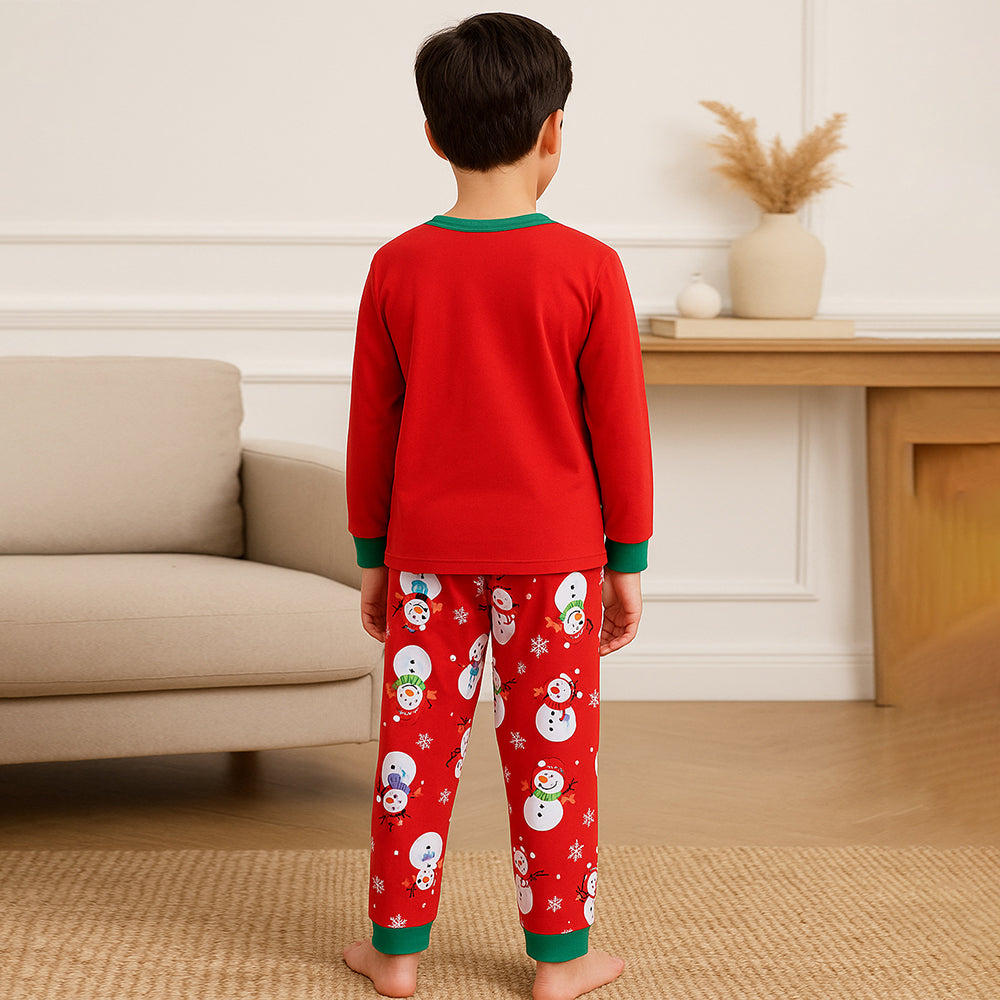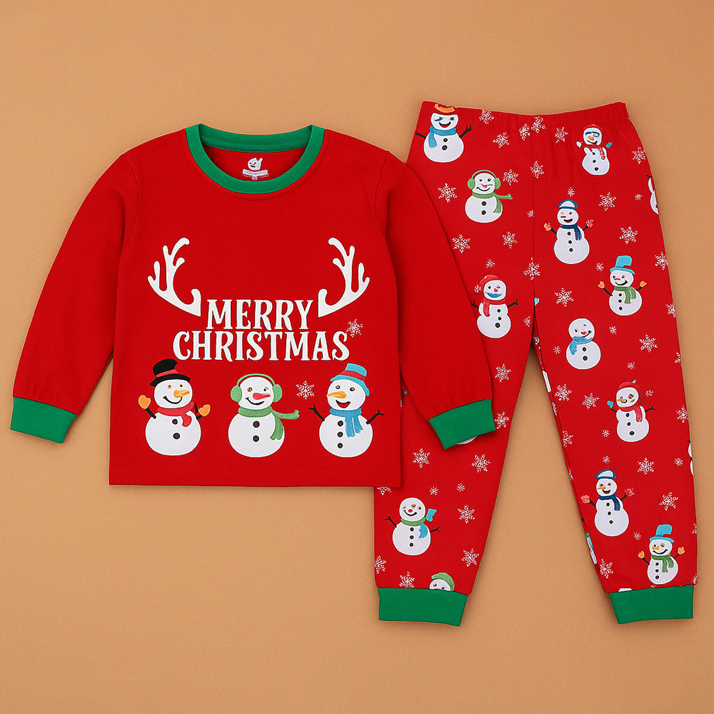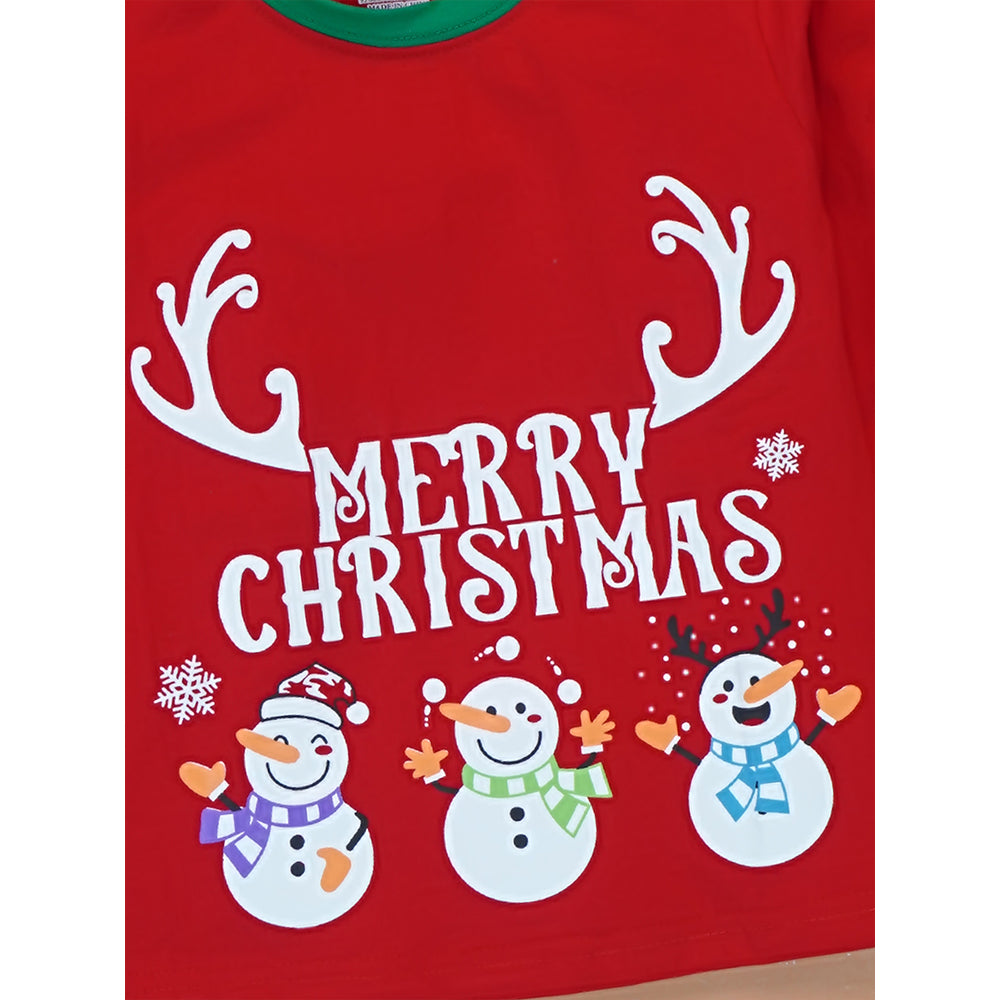 9-13 Yrs, Red 3Snowman soft Cotton Kids Christmas Nightsuit