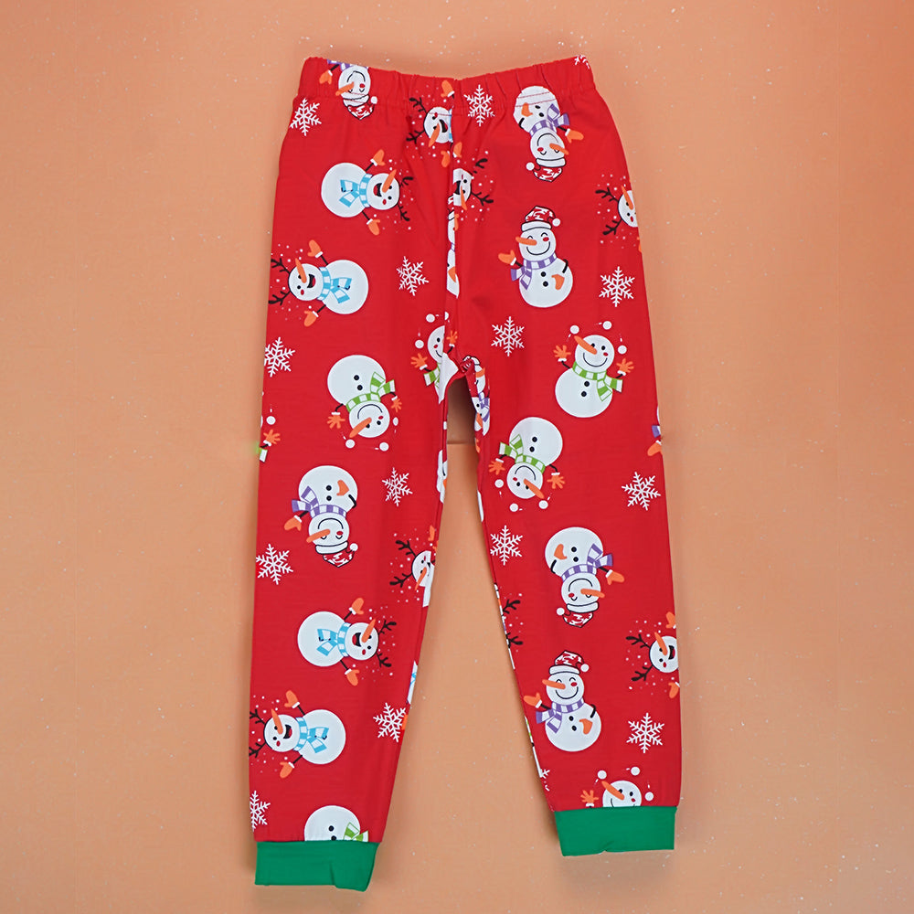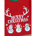 2. Festive Print: The top features a bold “Merry Christmas” graphic with adorable reindeer antlers, while the bottoms showcase a playful all-over snowman and snowflake print. The green ribbed cuffs add the perfect contrasting festive touch.