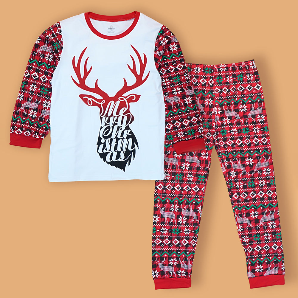 3-8 Yrs, Red Antlers soft Cotton Kids Christmas Nightsuit