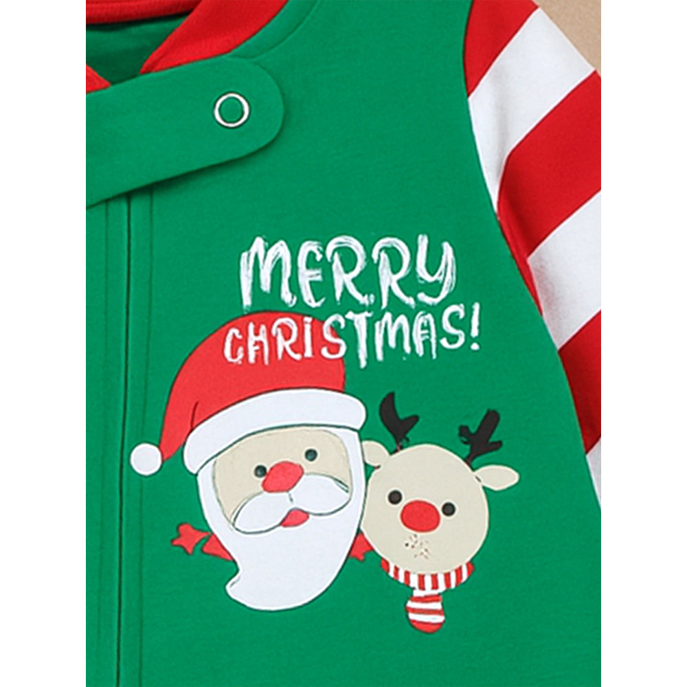 1. Classic Christmas nightsuit: This vibrant Christmas romper brings a cheerful holiday vibe with its bright green colour and playful seasonal design. Perfect for adding a touch of Christmas joy to cosy winter days.