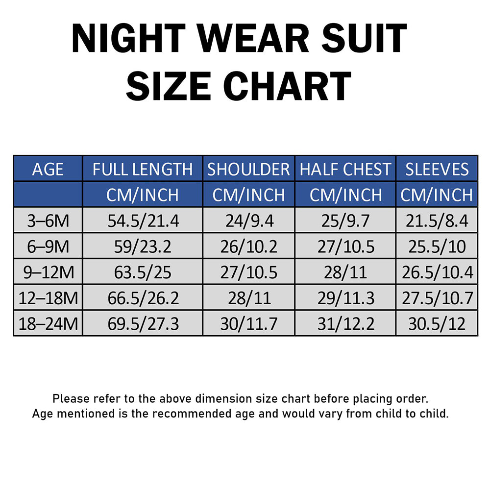 3. Material: Crafted from soft, breathable cotton, this nightsuit ensures complete comfort through the night. The fabric feels gentle on the skin, allows easy airflow, and remains durable while getting softer with every wash. Free from harmful dyes for safe, everyday use.