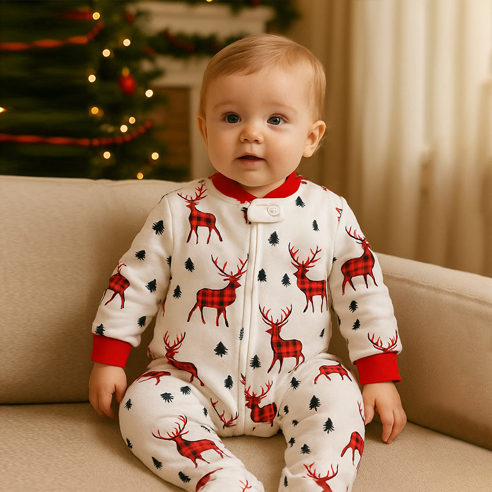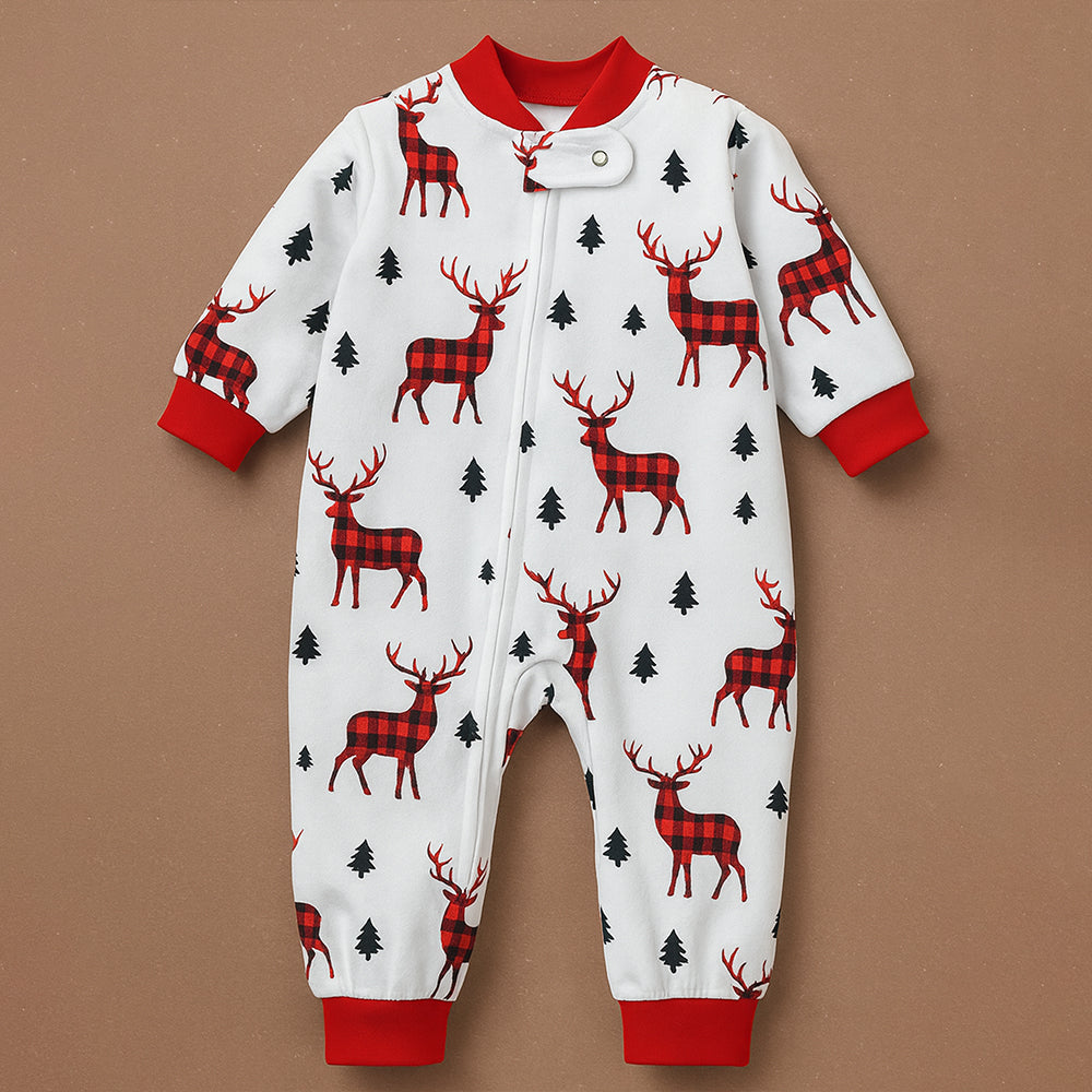 3-24 Months, Red Checks Deer soft Cotton,Infants and Toddlers Christmas Nightsuit