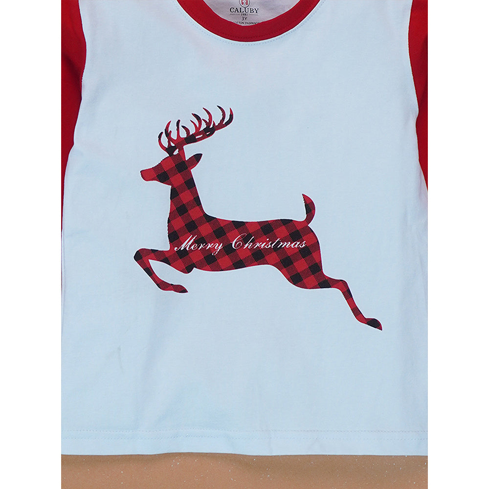 3-8 Yrs, Red Checks Deer soft Cotton,Kids Christmas Nightsuit