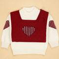 1. Design: This beautifully designed winter sweater is perfect for little ones who love a cute and stylish look. The warm cream pullover features heart patterns on the sleeves and comes with a red muffler with matching heart design. The charming heart artwork adds a sweet and playful touch, making your child look extra adorable throughout the winter season.
