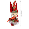 2. Design Details: This whimsical elf features a cheerful face, white hair and a vibrant outfit adorned with intricate holiday patterns. The long, floppy hat with jingle bell accents and curled shoes add a touch of magic and fun to your décor.