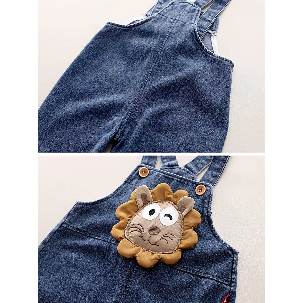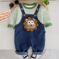 Spongy Lion Dungaree with Green Stripes T-shirt, 2 Pcs Clothing Set For Toddlers And Kids