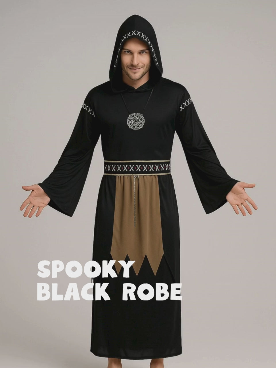 Spooky Black Robe Adult Halloween costume Fancy Dress Up