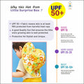 1.Design:Designed in a fun Jungle Lion print,this kids sun hat provides excellent sun protection with a wide brim to shield the face and neck.Its not a heavy hat .It is designed as a super light hat for toddlers. 2.Coverage:It provides a good coverage with a wide brim covering the face. 3.Adjustable Chin Strap:The chin strap ensures secure fit for active play and windy days.The strap also comes along with ablow shistle which makes it fun for the kids. 4.Lightweight & Quick-Dry Fabric:The quick dry fabric makes it an instant buy for all your outdoor play adventures with kids. 5.Variety:Little Surprise Box as a brand offers good choices for kids and toddlers outdoor adventure accessories comprising of caps,sunglasses,swimwear,beach bags,swim essentials and so much more. 6.Ideal for:This product is ideal for beach,pool,and outdoor adventures. 7.Age:Good for Toddlers and kids from 2- 5 years. |