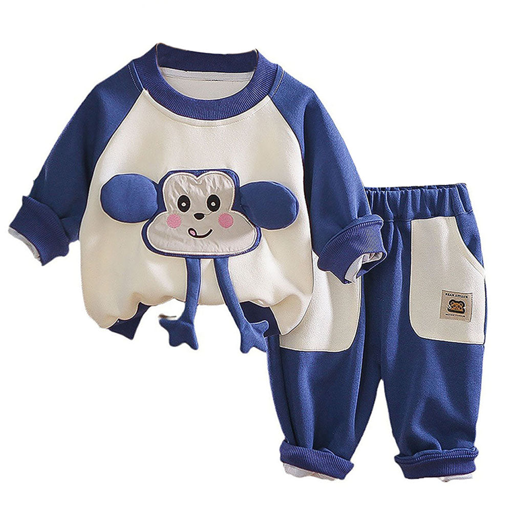Blue 3D Monkey Face 2Pcs Track Suit Set For Winter And All Season Wear