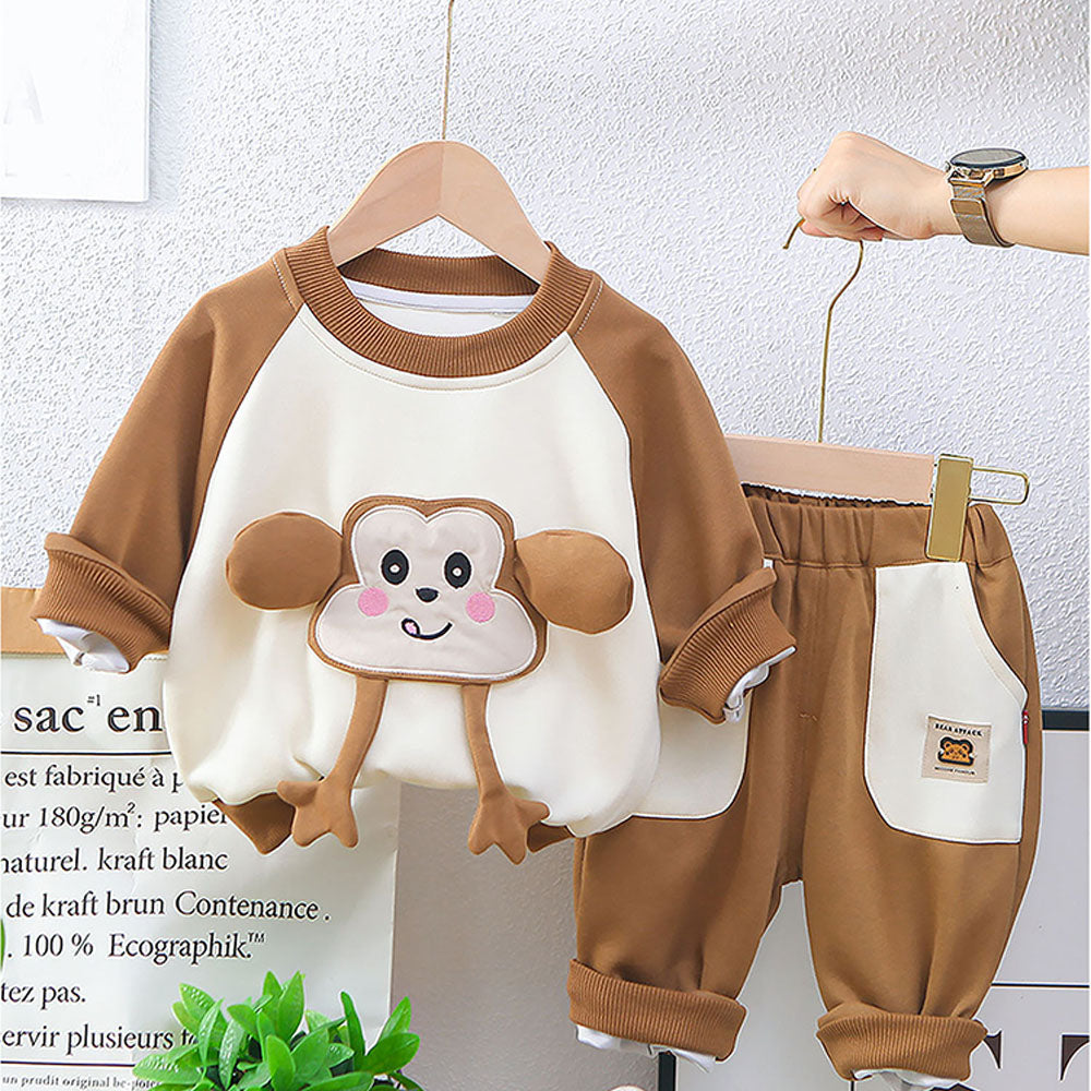 Brown 3D Monkey Face 2Pcs Track Suit Set For Winter And All Season Wear