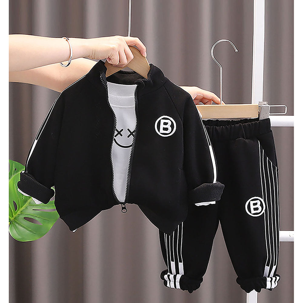 Black Letter B Monogram 3 Pcs Track Suit Set For Toddlers And Kids