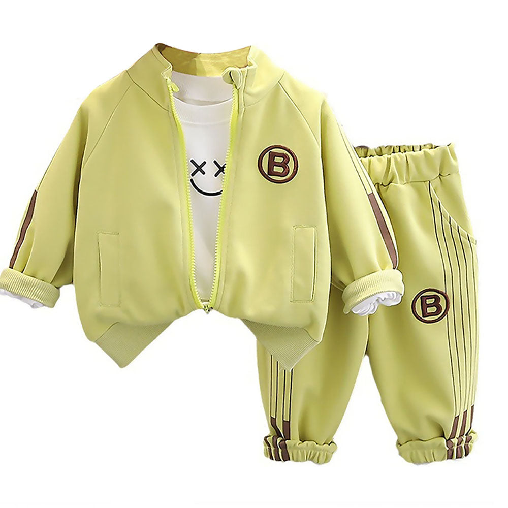 Light Green Letter B Monogram 3 Pcs Track Suit Set For Toddlers And Kids