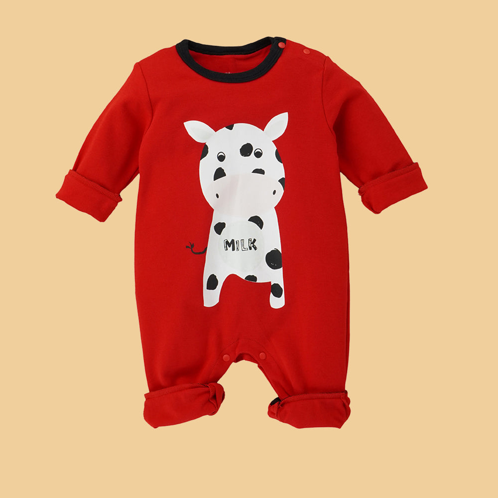 Red Romper with White Cow Print, 2-3 years Unisex Kids Wear