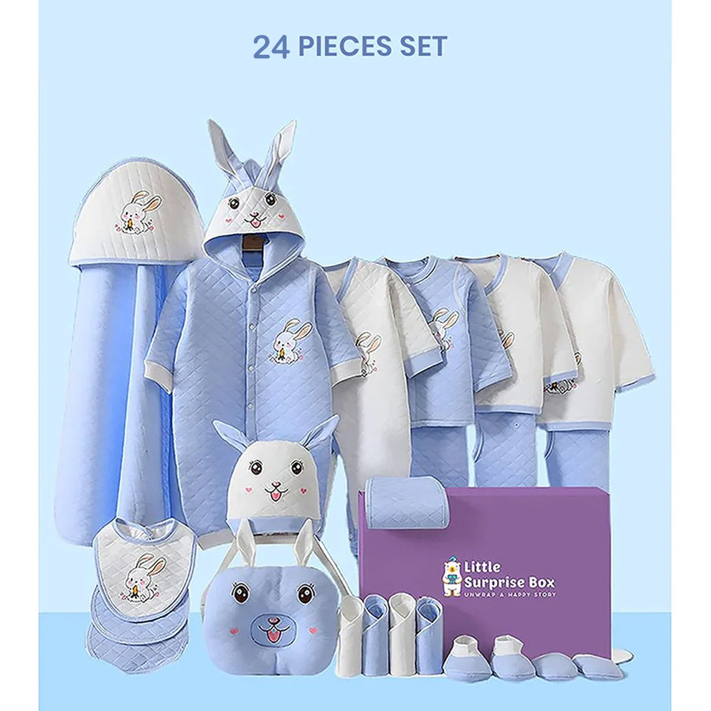 24 Pcs Winter Wear White Blue Dual Bunny Newborn Baby Girl/ Boy Gift Hamper Box