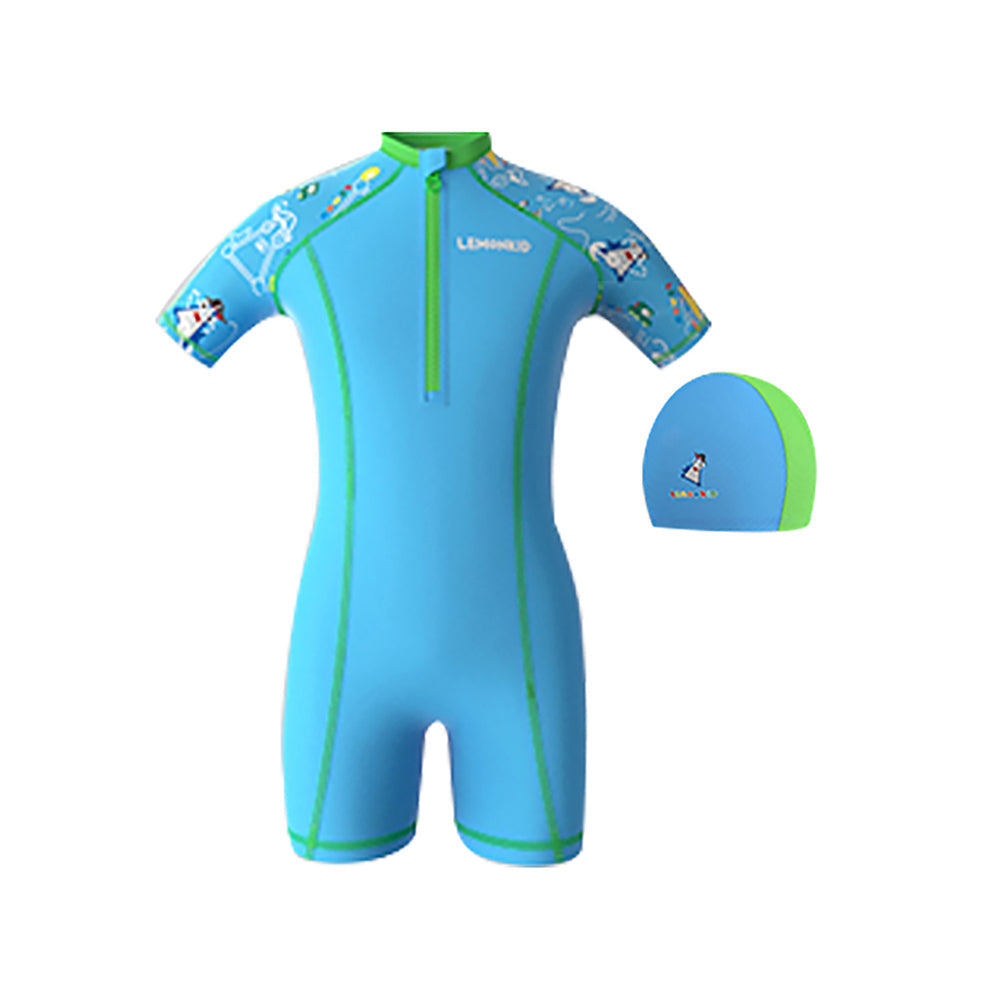 Full Sleeves Kids Swimwear Yellow & Blue Transport theme, UPF 50+