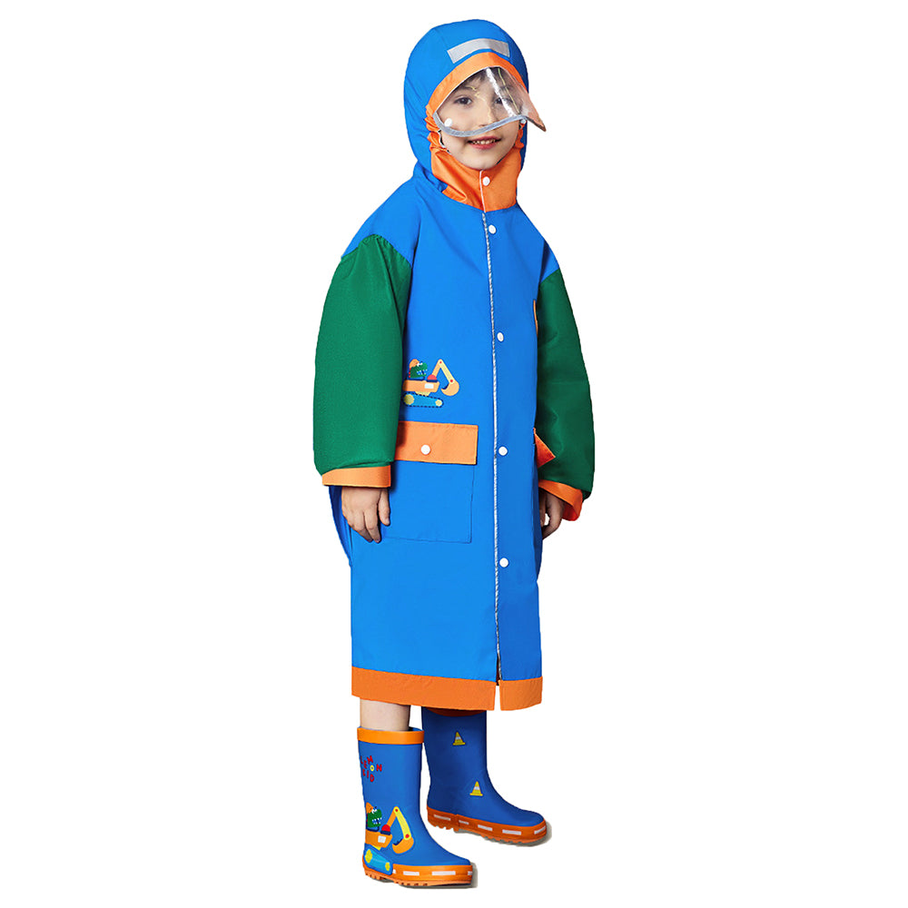 Blue Green sleeve Dino Digger knee length raincoat for kids