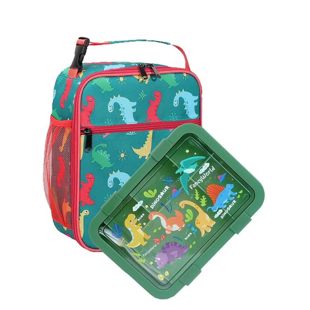 2 pcs Dino Lunchbag & 5 section Lunch box for Kids