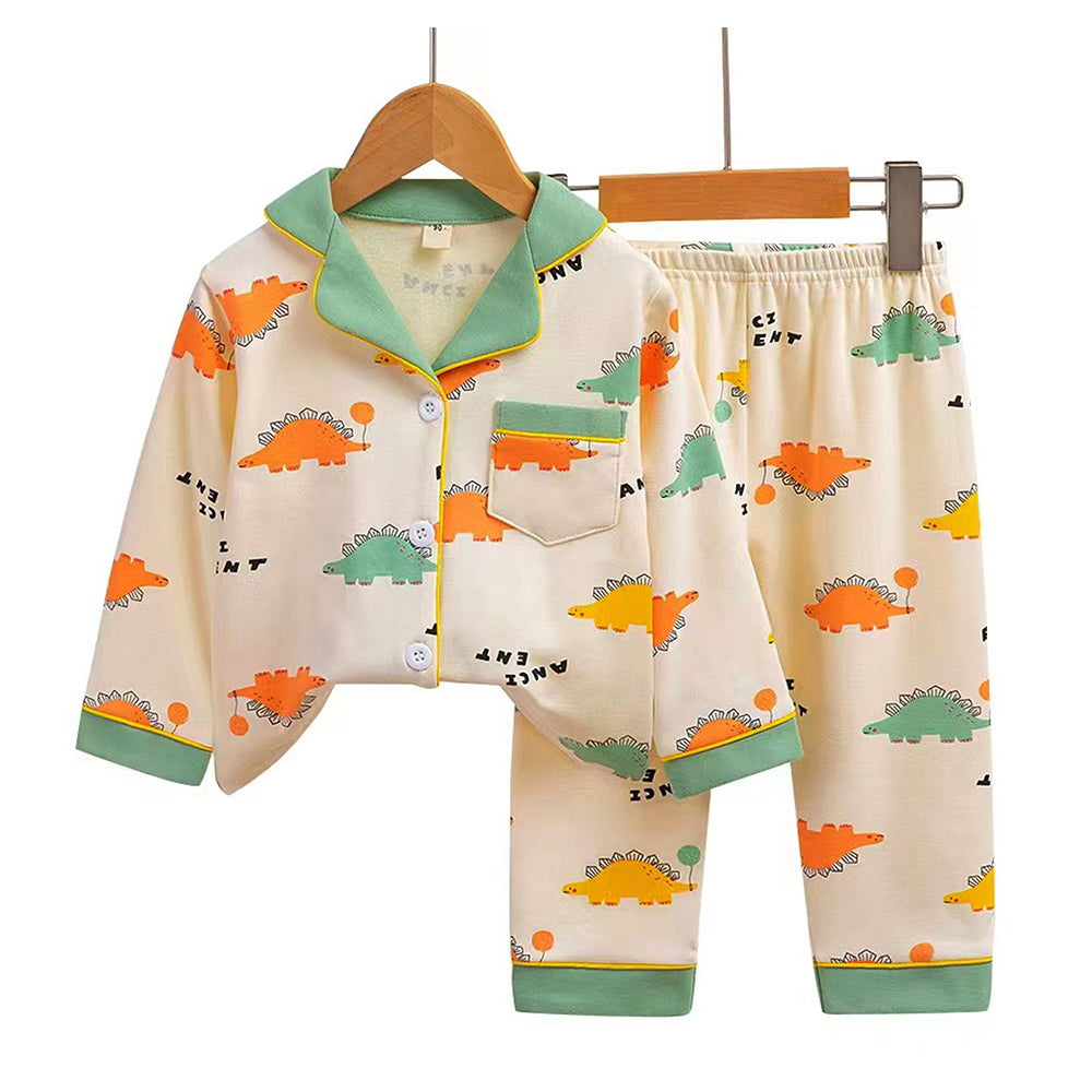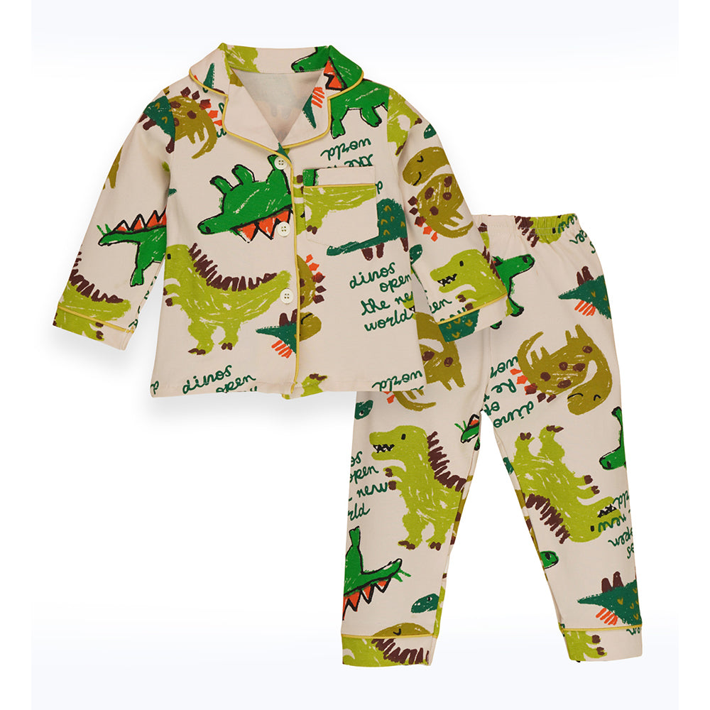 Baloon Dinosaur Olive & Cream soft Cotton Kids Nightsuit