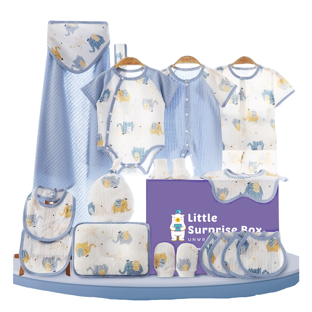 This hamper includes everything a baby needs. Whether it be clothes, bibs, swaddles, mittens, or even a burp cloth, we provide all in one premium and unique packaging. So what are you waiting for? Explore our online store and get the best gifts for your little ones