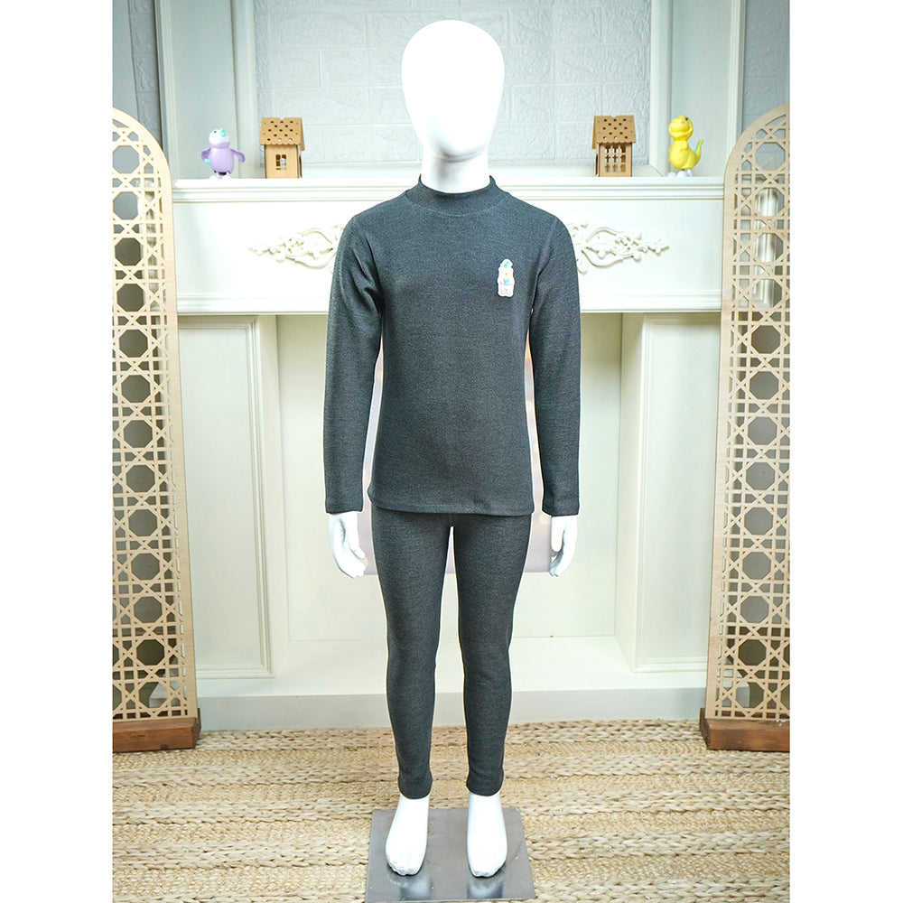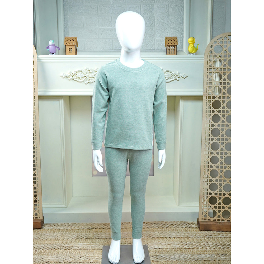 The detailing on this Childrens thermal wear makes it ideal for the child. It has a crew neck and full sleeve design, which makes it warmer for kids to wear. Childrenâs thermal pants have bottom cuffs that protect them from cold air and give warmth from head to toe. This makes it a perfect fit for a child who can wear it all winter.Â