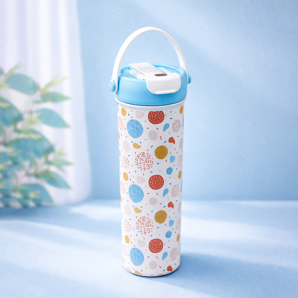 Light Blue & orange sprinkles soft silicone handle series, Stainless Steel Tumbler and Water Bottle for kids, Teens and Adults, 650 ml