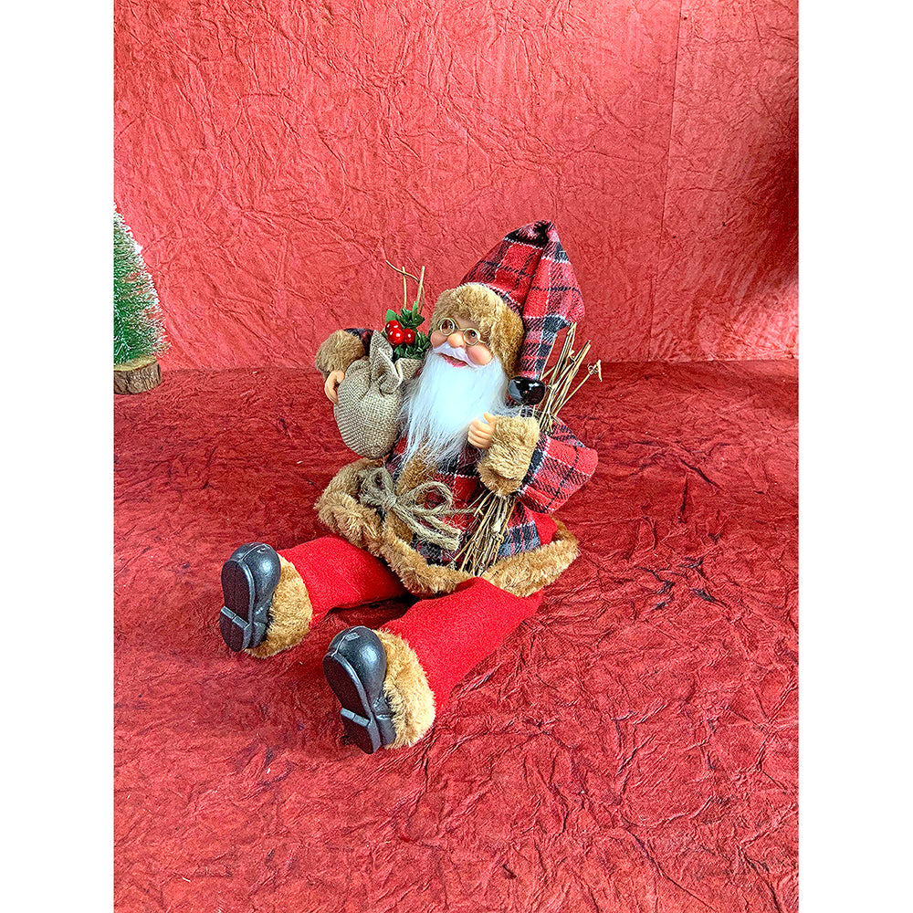 13 inches Premium Plaided checks sitting Santa Christmas Décor