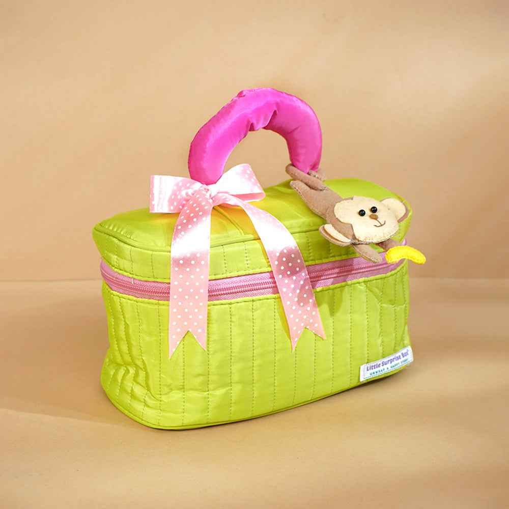 4. Pillow soft Satin Fabric Pouch: This hamper comes nicely packed in a cute foldable soft pouch with handle and foldable compartments which make sit easy for the new parent to carry toileteries or important essentials for the child while travelling.