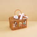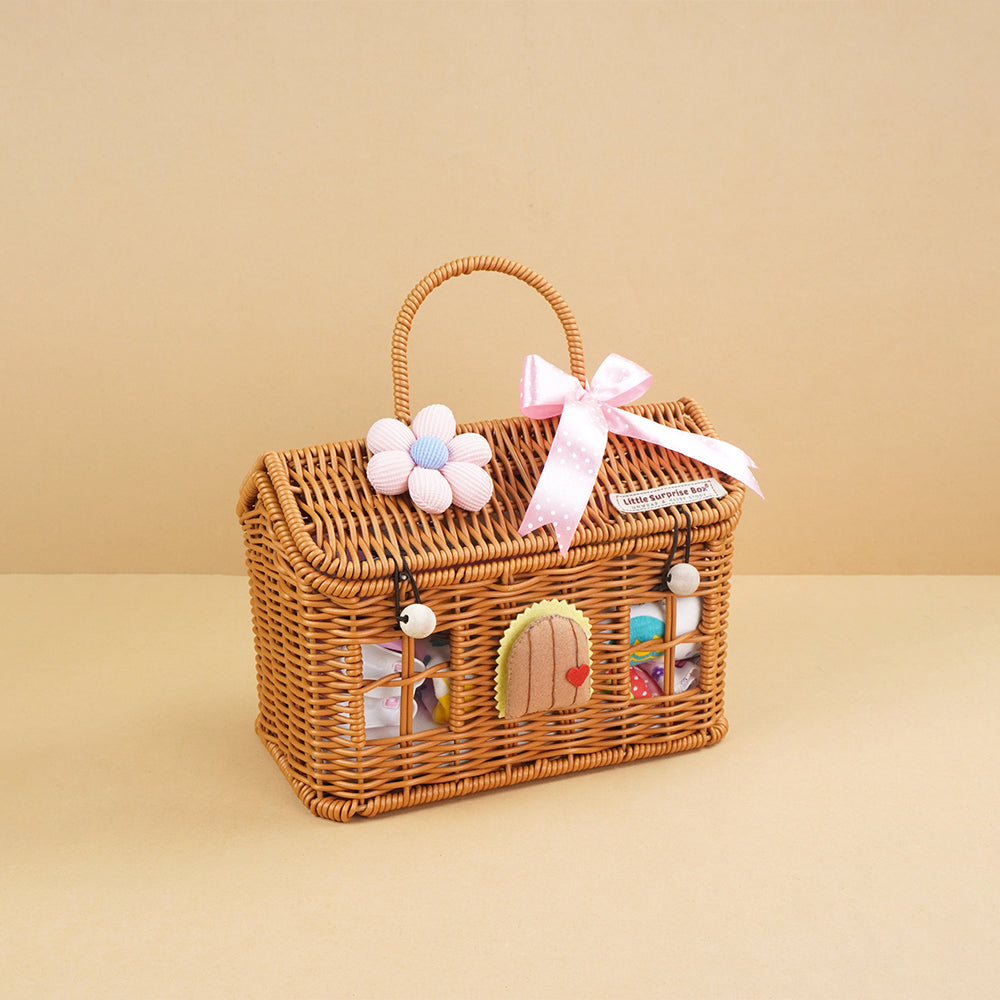 4. Cane Basket Box: This piece comes nicely packed in a cane basket which is in a beautiful home shape basket filled with essentials which makes it a true winner and totally heart warming for the new set of parents.