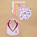 1. 15 Pcs Assorted Gift Hamper Set: This stunning 15 pcs Gift Hamper set is a beautiful assortment of exclusive essentials for a baby girl. This hamper includes •1 pair of 3d Booties • 5 Napkins • 2 Beautifully printed onesies •1 Door Signage •1 Fancy blessed Home theme cane basket good for storage and travel • 2 Bath Toys. • 1 Bib • 1 Muslin Swaddle.