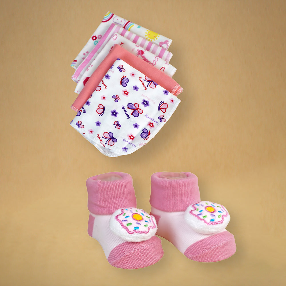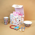 1. 16 Pcs Assorted Gift Hamper Set: This stunning 16 pcs Gift Hamper set is a beautiful assortment of exclusive essentials for a baby girl. This hamper includes • 1 Hardboard Storage Box • 1 Beautifully printed onesies •1 Door Signage •1 Bamboo fibre Feeding Bowl • 1 bamboo fibre spoon and fork set •1 matching Bamboo fibre cup• 5 Napkins • 2 Bibs • 2 booties.