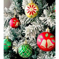 3. Size: Every ball is asorted with varied printing designs like swirls, checkered, bells and so much more. It is suitable for decorating Christmas trees of all sizes.