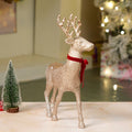 1. 2PCS Combo set of Big & Small Deer: Bring a touch of festive elegance and sparkle into your home with this beautiful pair of champagne gold bronze Glitter sequenced Reindeer Figurines. Crafted with exquisite detailing and shimmering gold texture, this timeless décor piece captures the magic of Christmas — adding luxury and charm to any corner of your home.