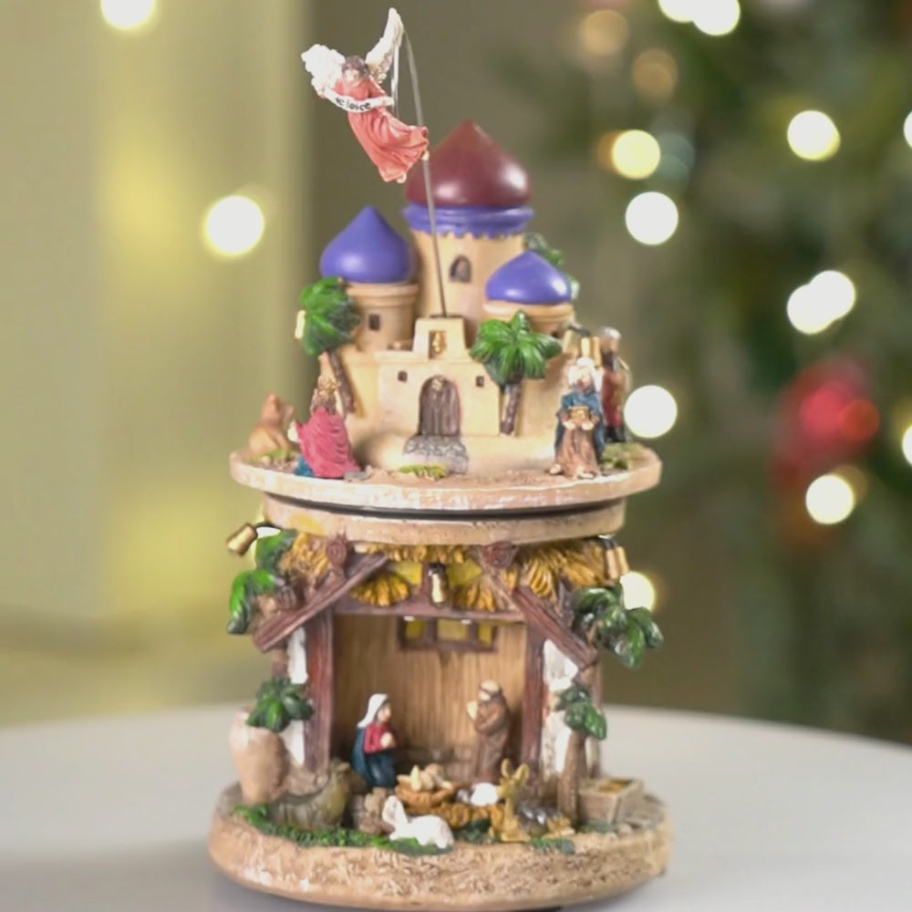 2 Layered Rotating, Musical & Lit Angel Holy Family Bethlehem Crib and Nativity set Christmas Décor