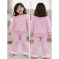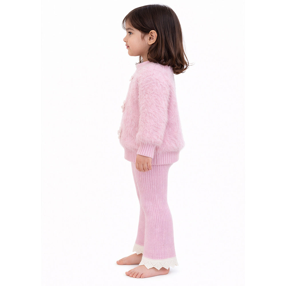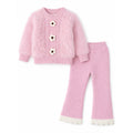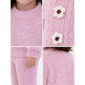 2 Pcs Pink Flower Sweater & Flare Pant, Winterwear Co-ord set for Girls