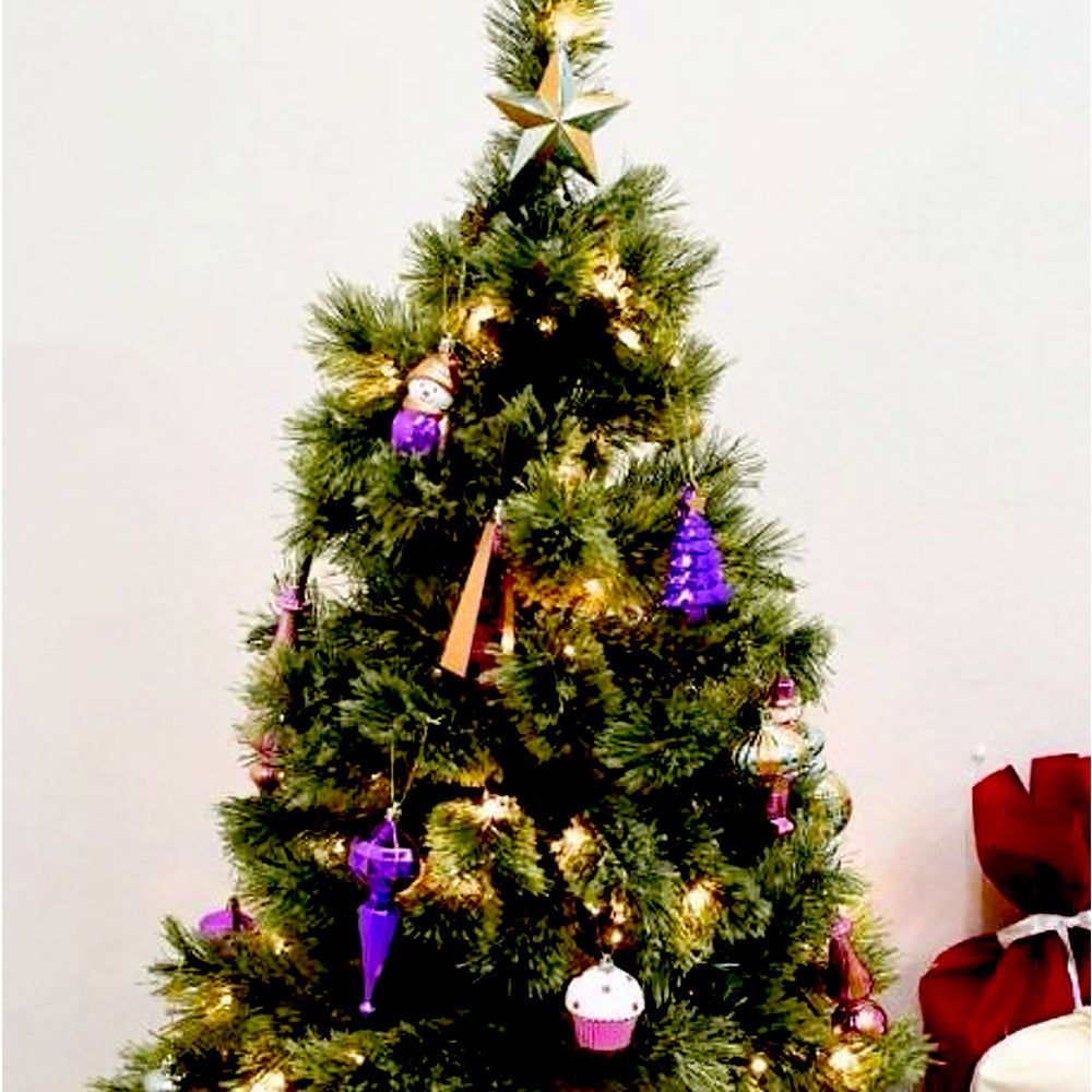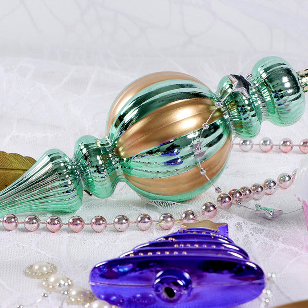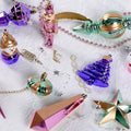 1. 22 pcs Christmas Decoration Balls Set: A unique, premium Pink, Purple & Mint themed Christmas decoration set featuring 22 beautiful ornaments. Designed in quirky pastel festive tones, this exquisite assortment offers a stunning mix of long baubles, nutcracker figurines, geometric shapes, stars, cupcakes, and decorative Christmas icons.