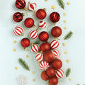 2. Broad Pointed Red & White Themed Xmas Balls: This set includes 26 beautifully crafted ornaments inspired by elegant Christmas styling. Each piece features striking broad-pointed shapes, classic red-white stripes balls, shimmer textures, glittered baubles and more. With their premium detailing and festive look, each ornament is truly beautiful to decorate with.